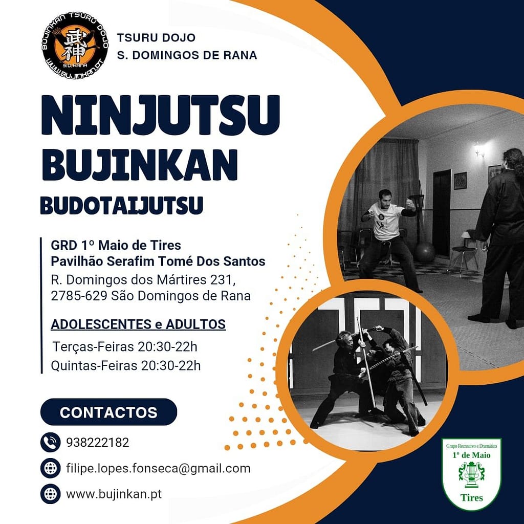 No Grupo Recreativo e Dramático 1º de Maio de Tires, oferecemos aulas de Ninjutsu (Bujinkan Budotaijutsu), uma arte marcial ancestral que combina disciplina, autodefesa e desenvolvimento pessoal. Esta prática única ensina técnicas tradicionais de combate, estratégia e movimentação, adaptadas às necessidades modernas, num ambiente seguro e acolhedor.